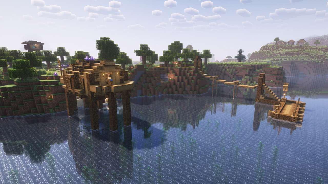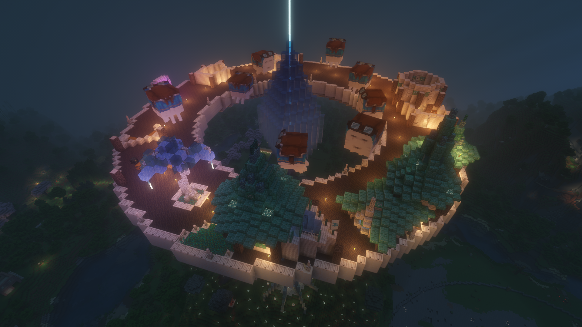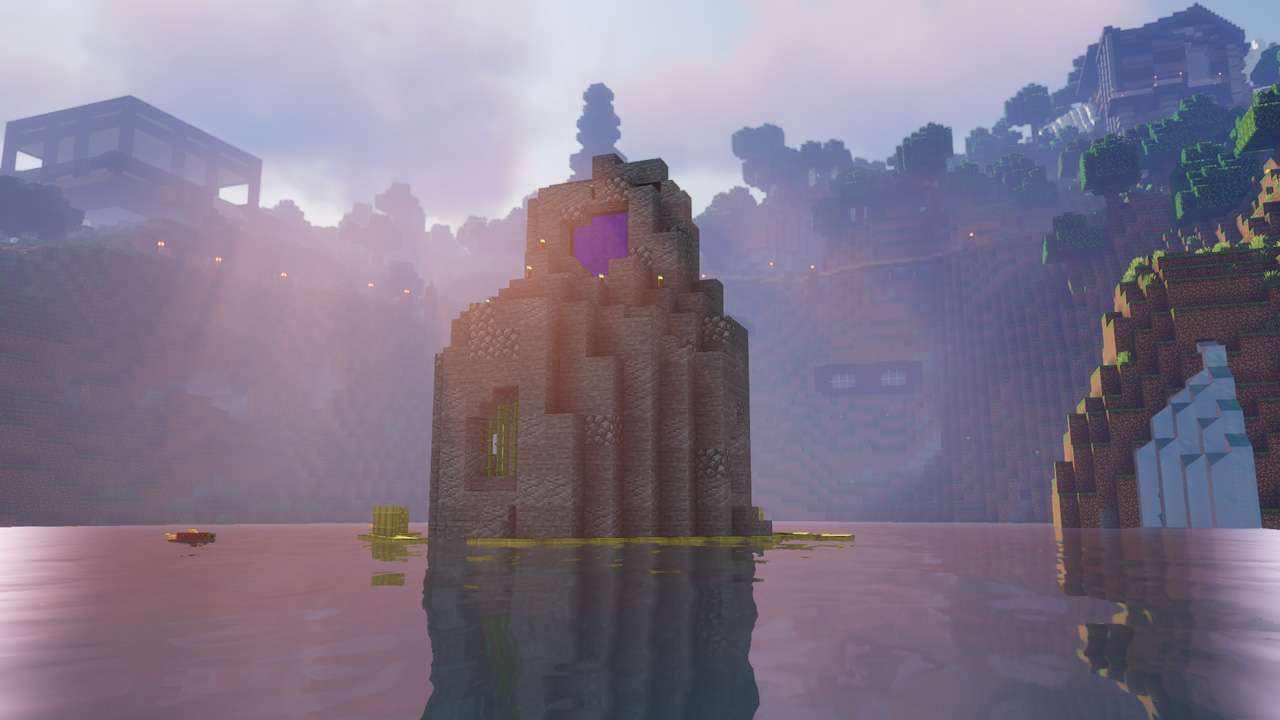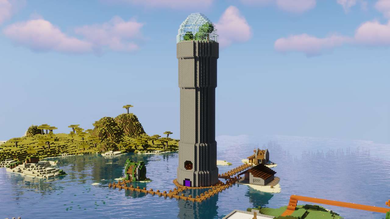 This world was centered around an archiplago of islands. We have quant buildings on an isle of flowers, and a mushroom village.