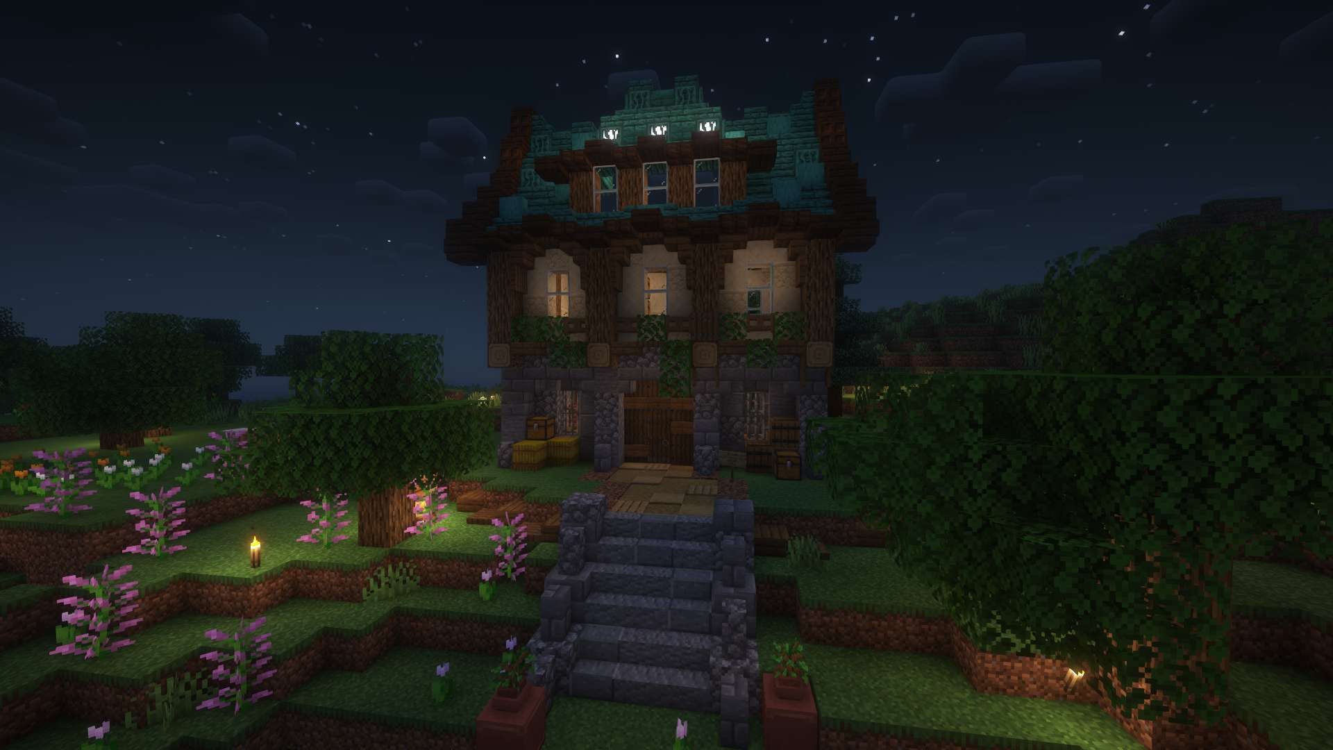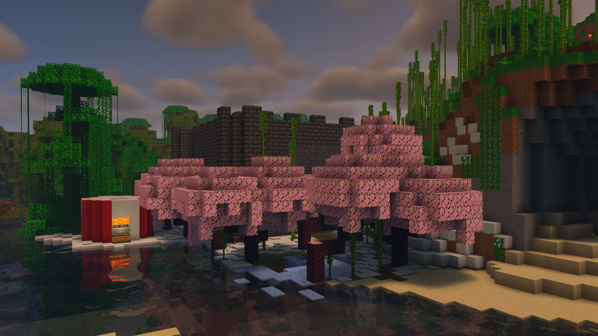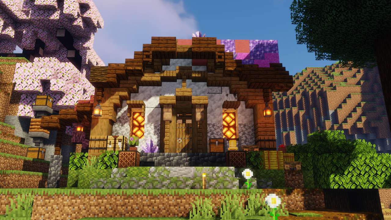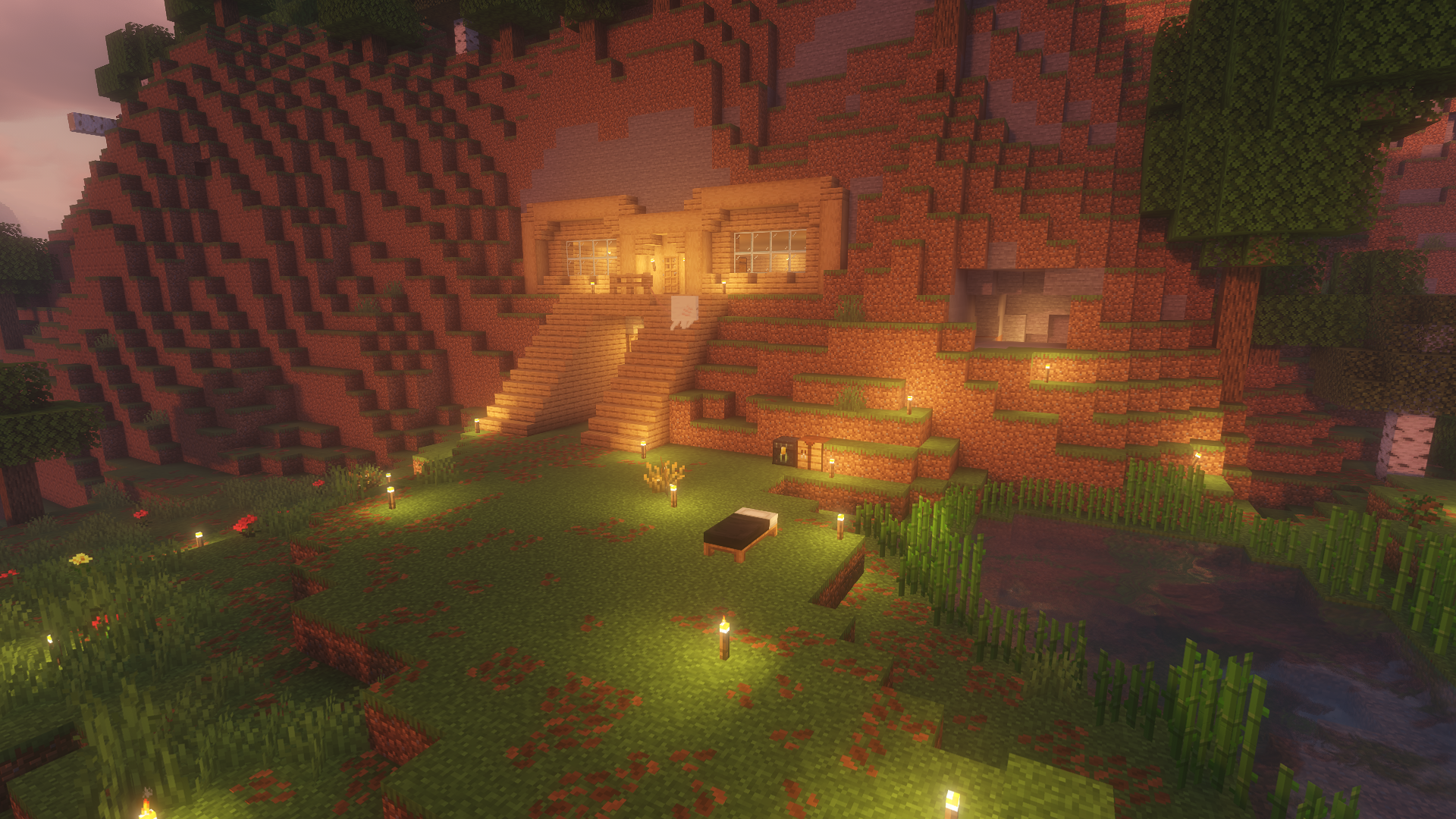 This world was centered around an archiplago of islands. We have quant buildings on an isle of flowers, and a mushroom village.