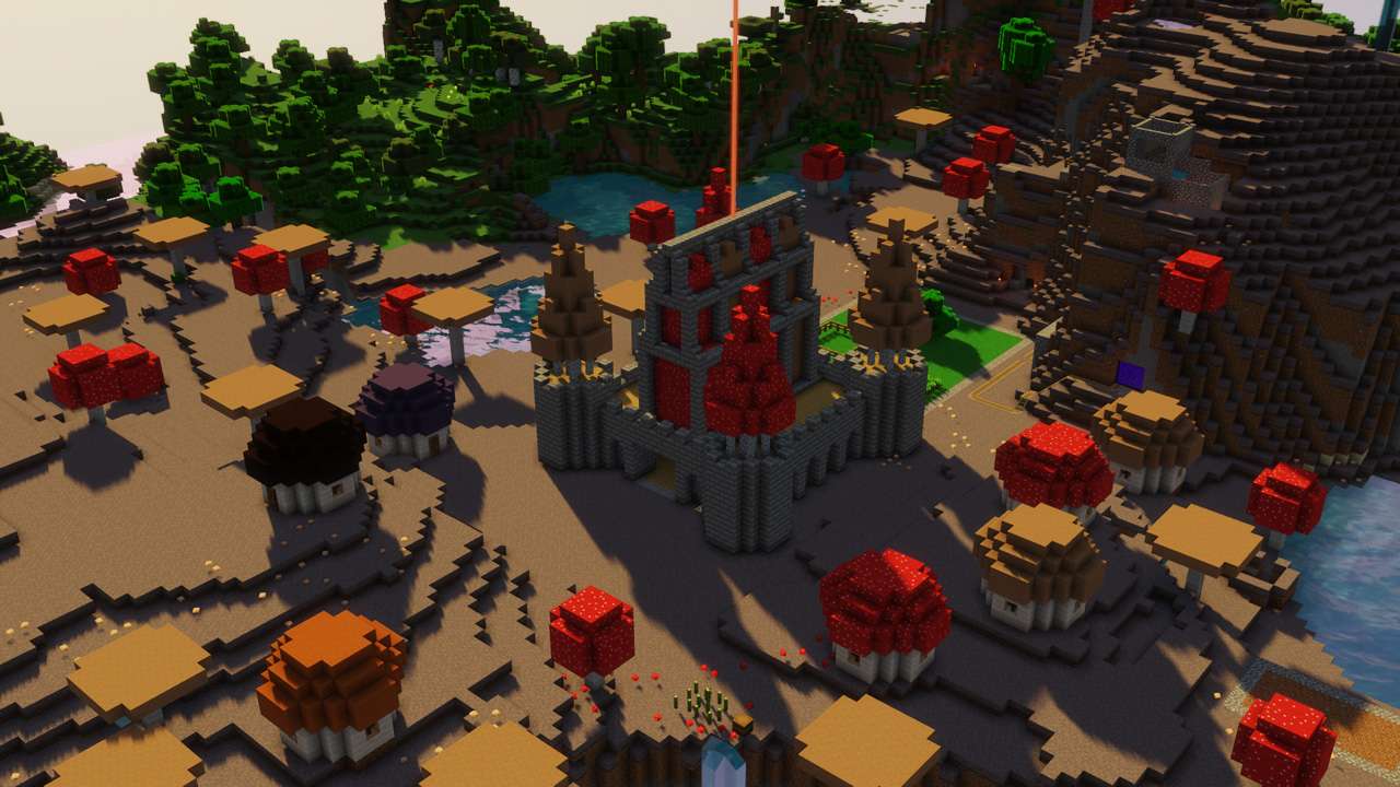 our largest world in scope, likely because it was played around the time that everyone was sheltering in their homes from COVID-19. we have castles, we have ruined homes, we have towers both evil and phallic in shape, and a city in the land of mushrooms.