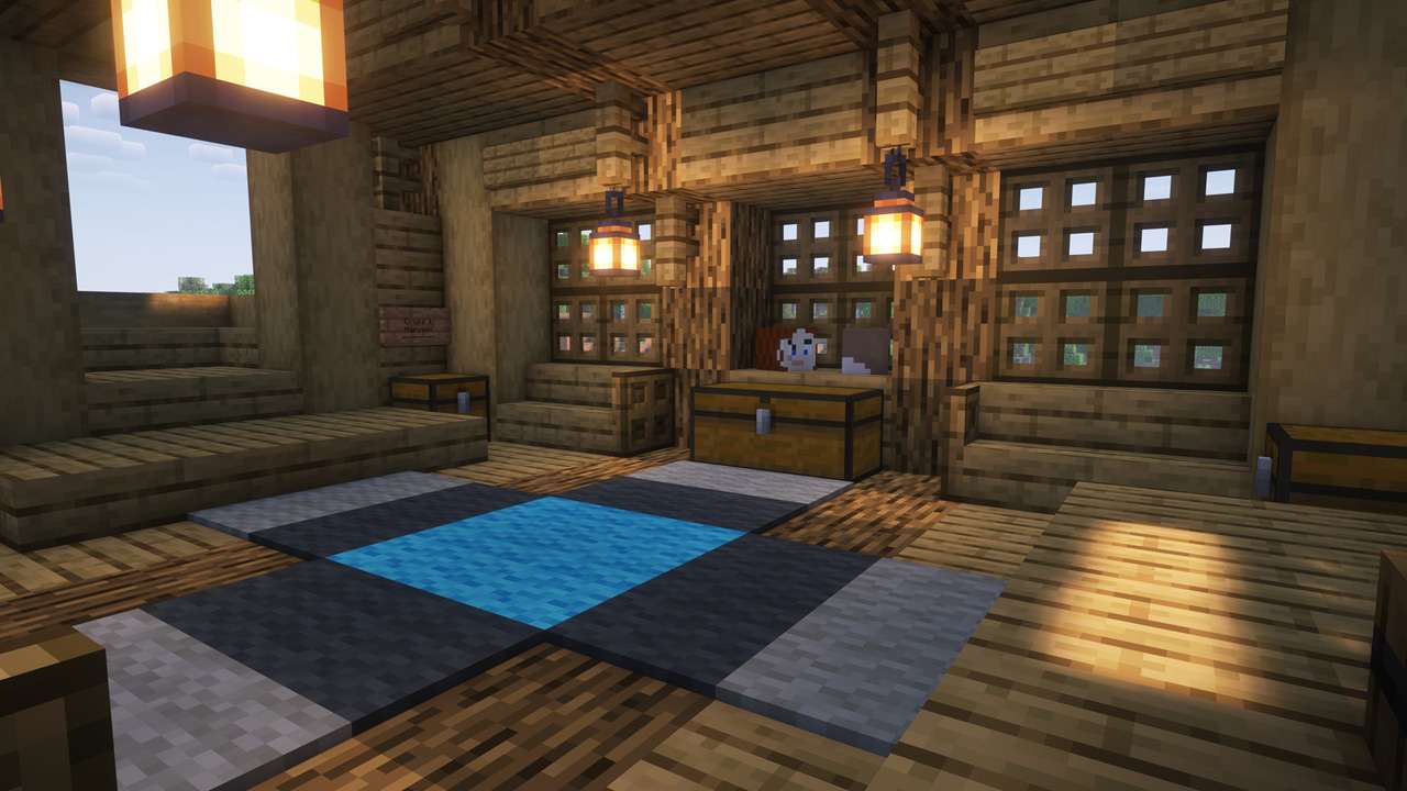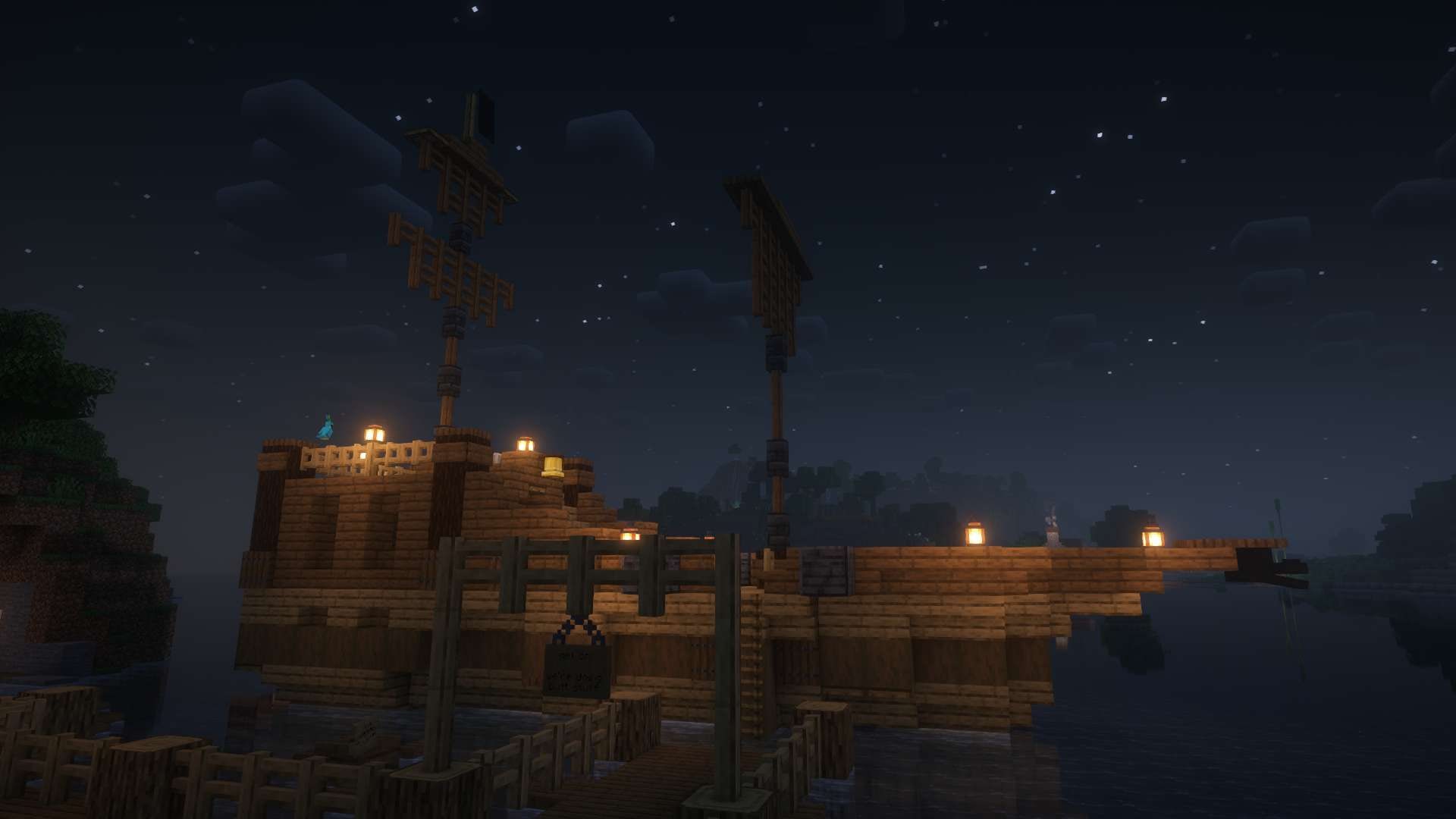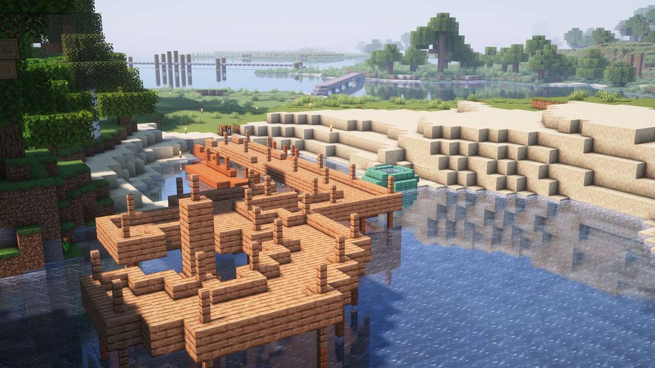 for once, I built the biggest build in this workd, a large palace of sandstone and blue wood. We also have myriad beautiful wooden docks.