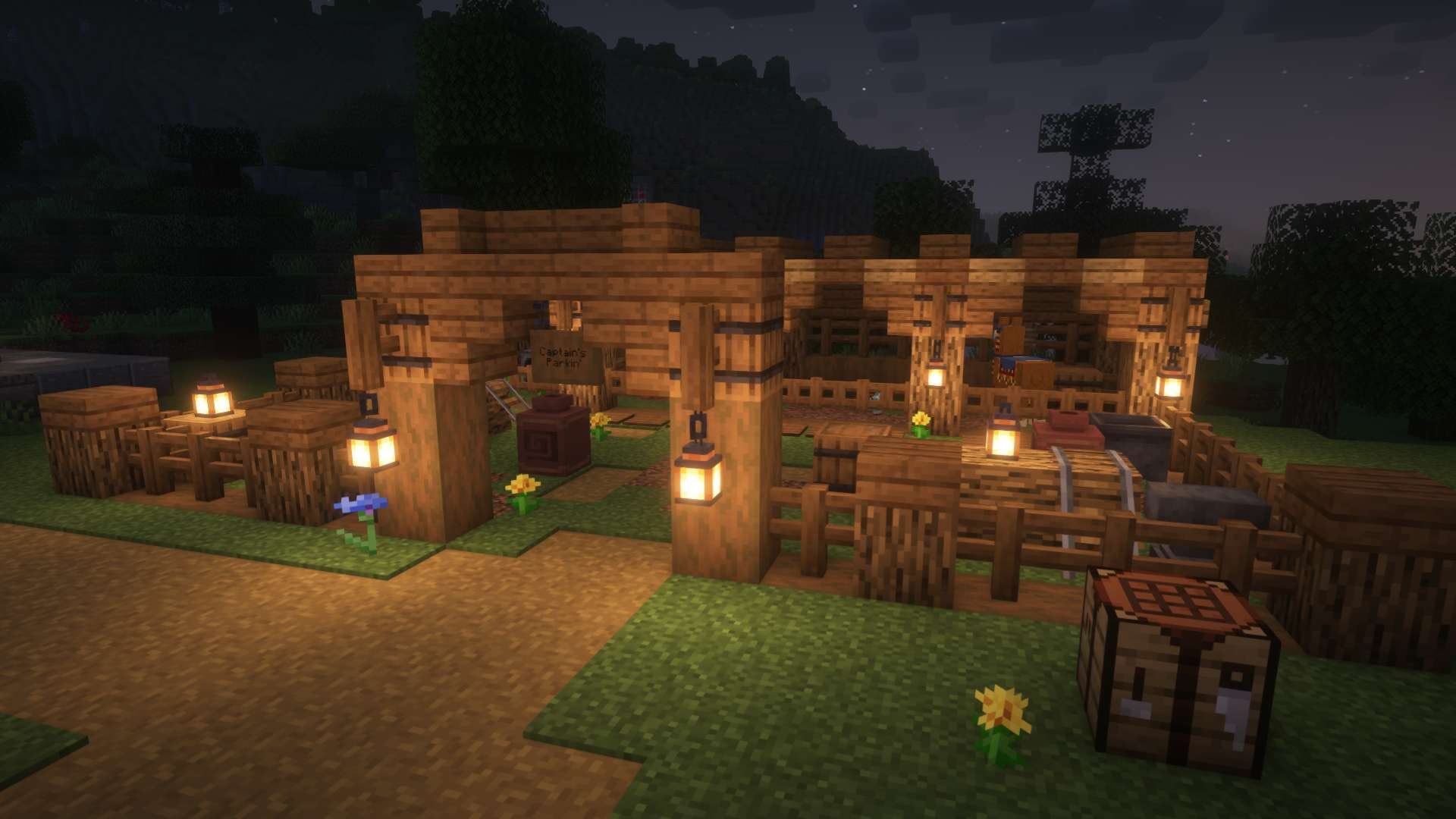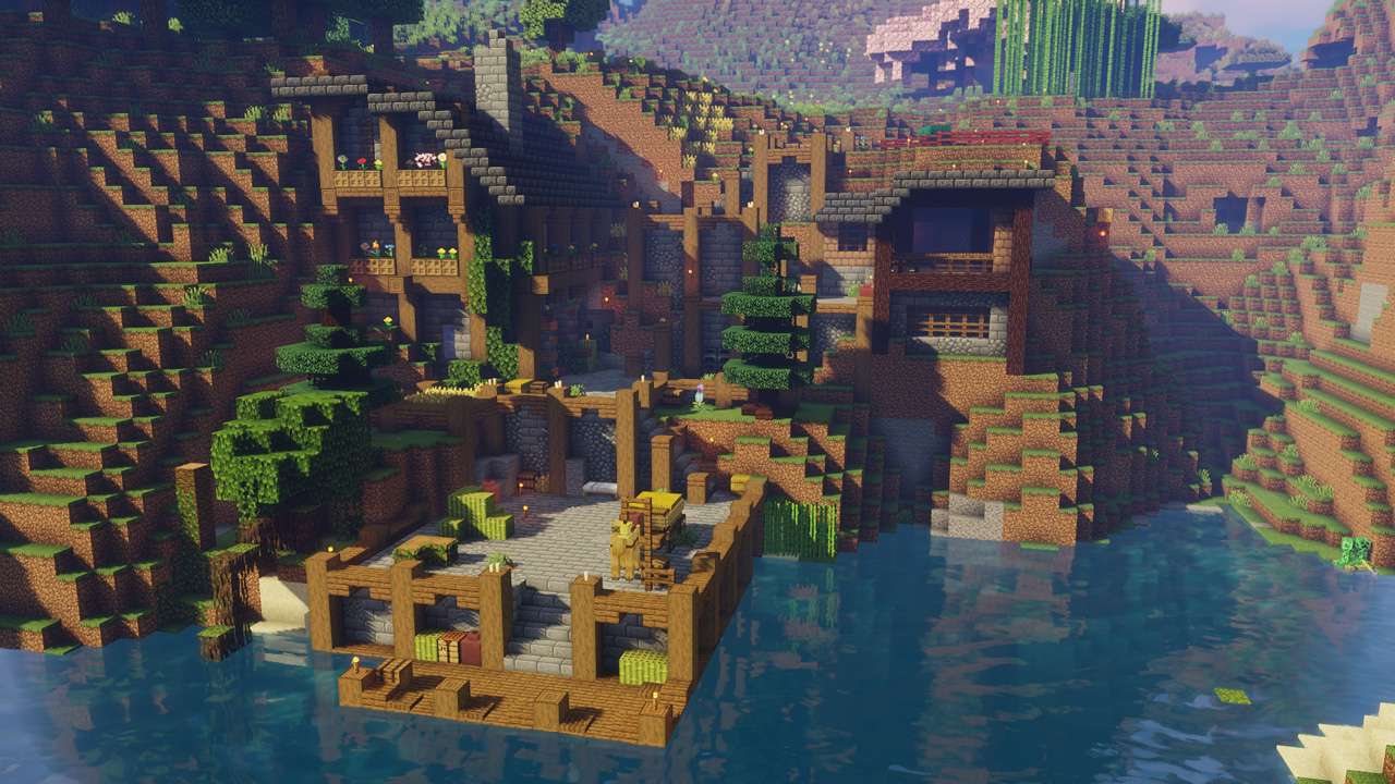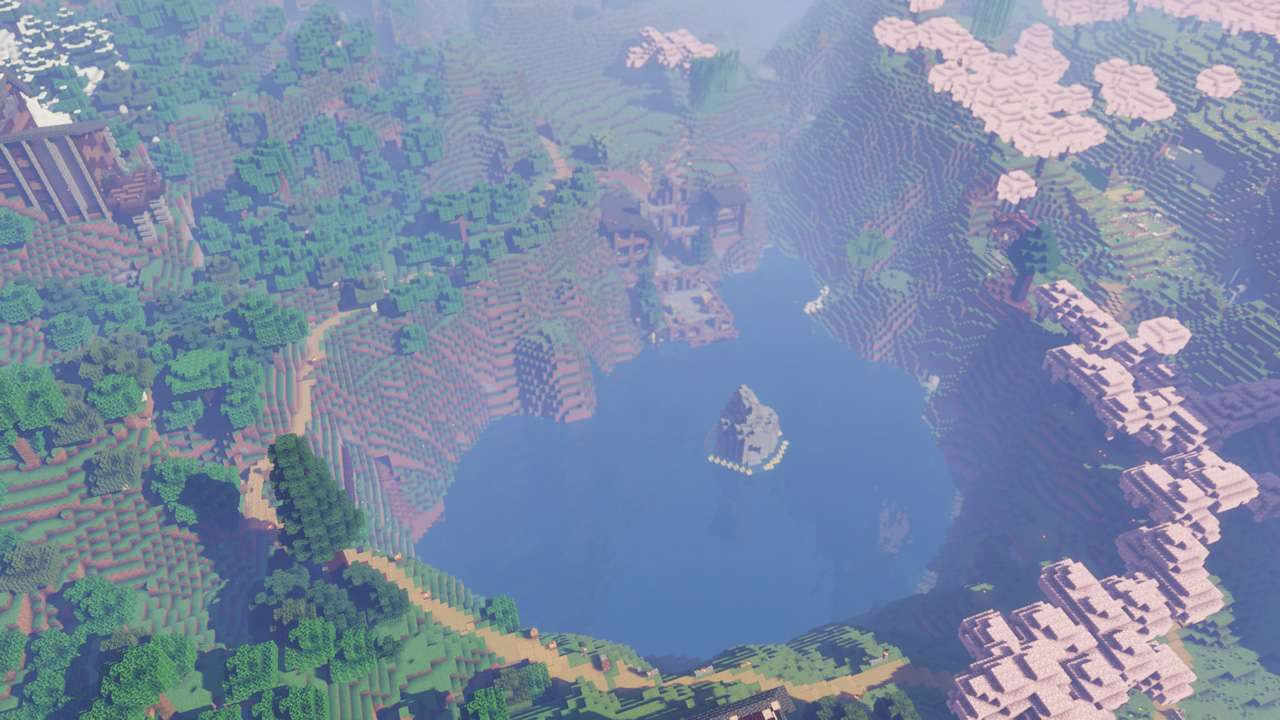 centered around a large inset lake, the highlights of this world include a port town with a bar plastered with signs covered in name suggestions, an underground sniffer reserve, and a far off mountain biome of blue mud.
