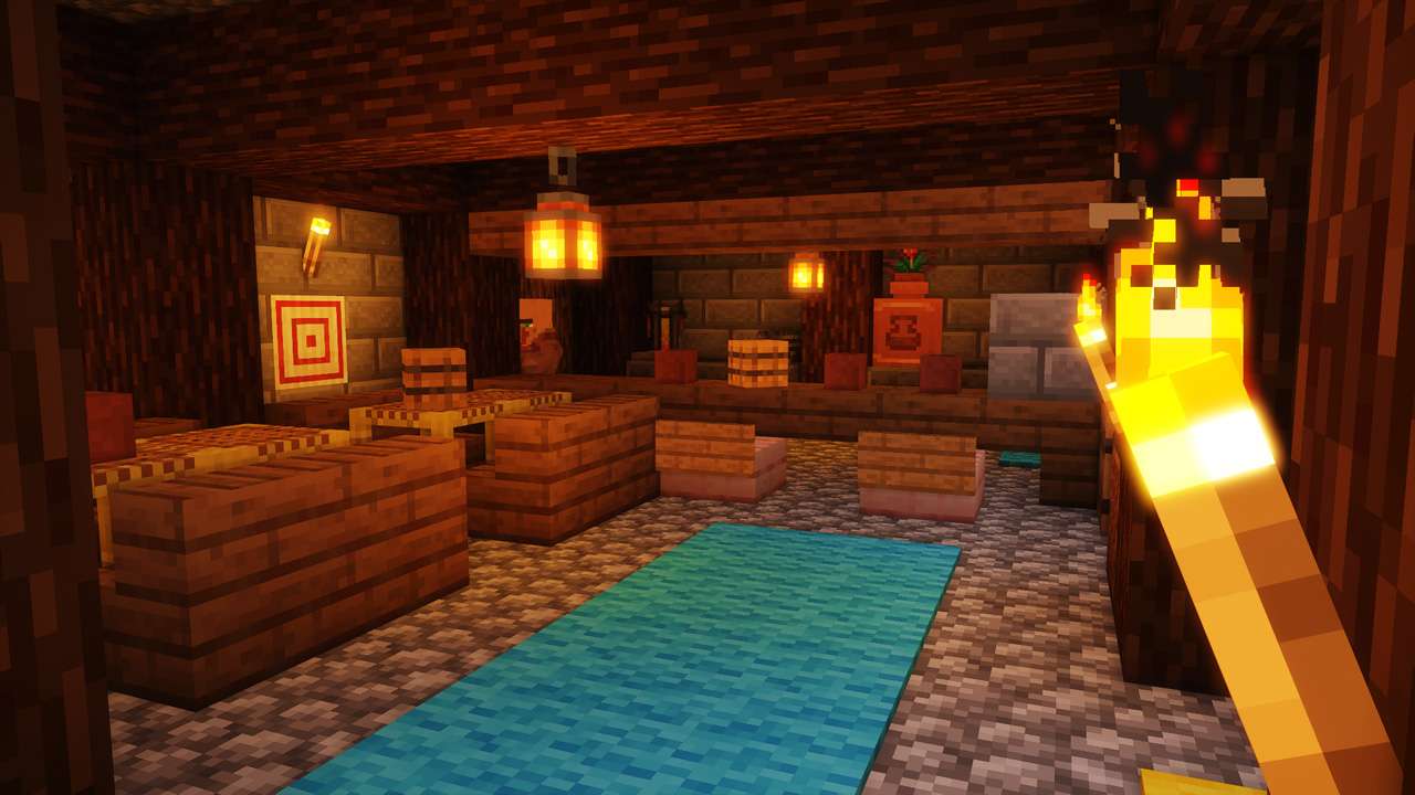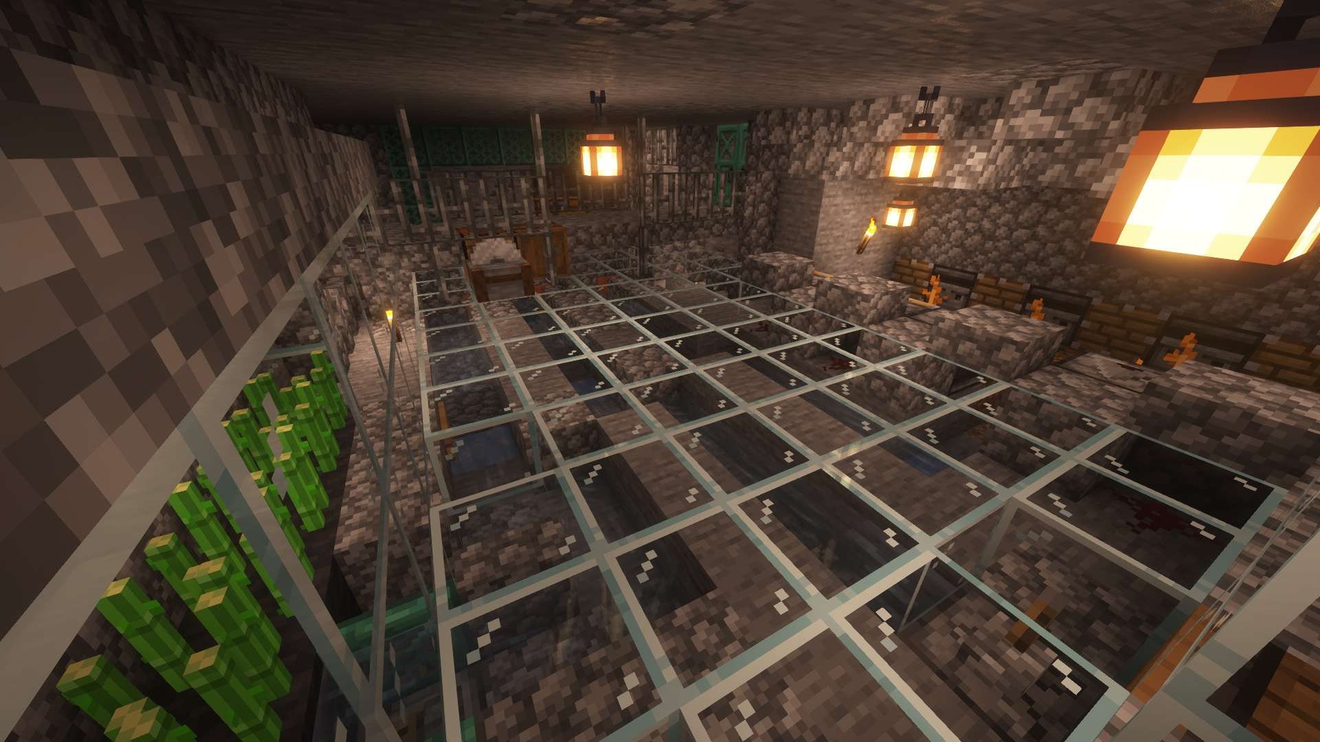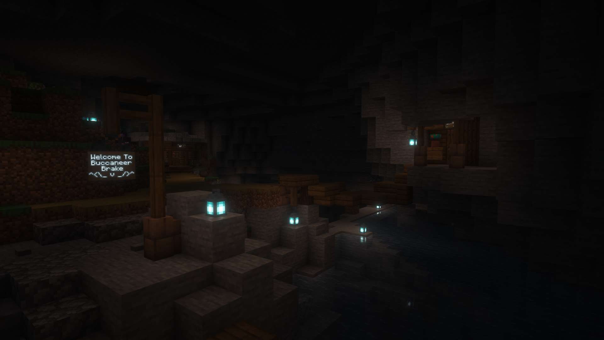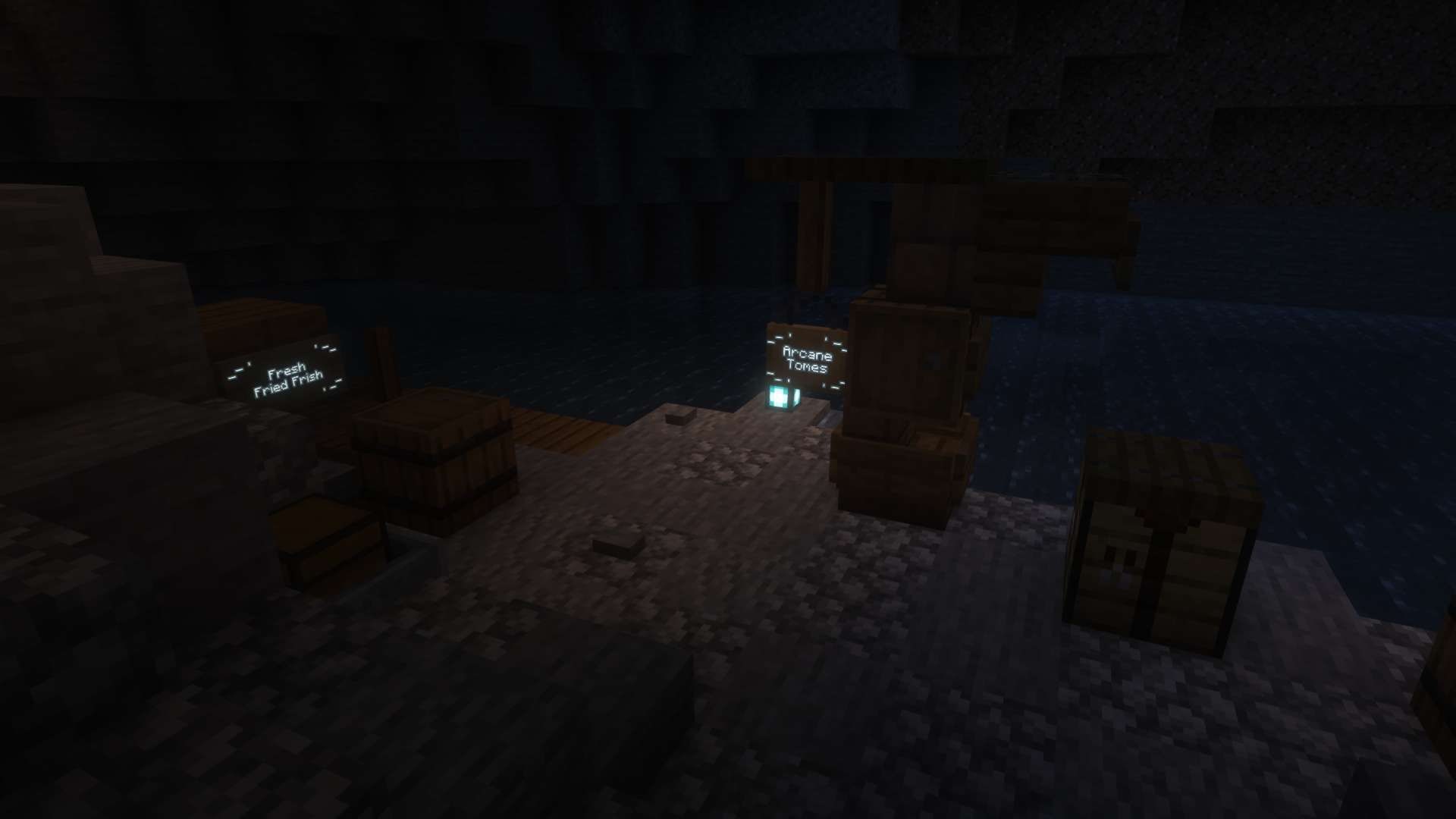 Centered around a central plateu, this world contained a pirate ship, an underground pumpkin pie factory, and a small cavern fishing town.